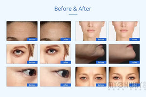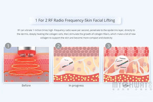 The device uses high-frequency RF energy to stimulate collagen production, preventing wrinkles and promoting skin rejuvenation.