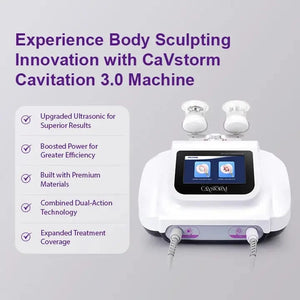 - New Ultrasonic Transducer: The redesigned Cavstorm transducer, based on Cavitation 2.0 technology, delivers more powerful, focused ultrasonic waves compared to the older version. This results in enhanced adipose reduction. The Cavitation 3.0 transducer covers the entire surface area for broader power distribution.