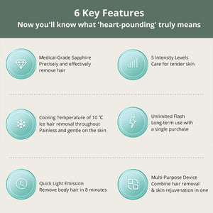 Are you tired of the discomfort and inconvenience associated with traditional hair removal methods like waxing and shaving? Equipped with a sapphire ice-cooling system, this compact and user-friendly laser hair removal device provides a refreshing sensation on the skin, ensuring a pain-free, enjoyable, and safe experience.