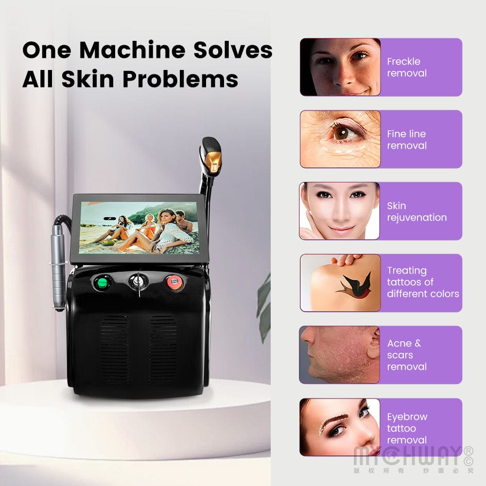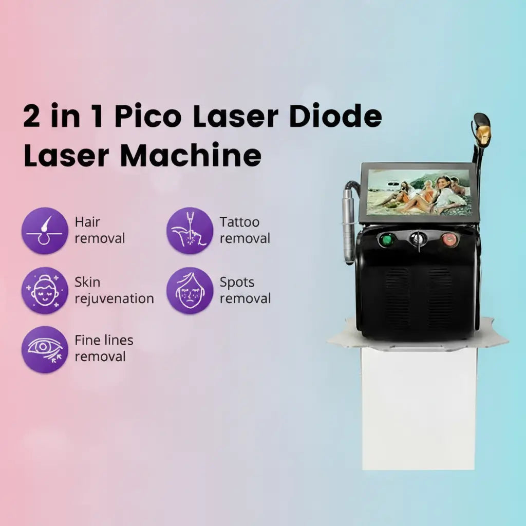 Versatile Dual-Function Laser System for a Wide Range of Treatments: Achieve lasting hair removal with the Diode Laser and target tattoos, spots, fine lines, and more with the Pico Laser. This 2-in-1 laser machine covers a wide range of professional treatments, making it ideal for beauty salons looking to offer diverse services.