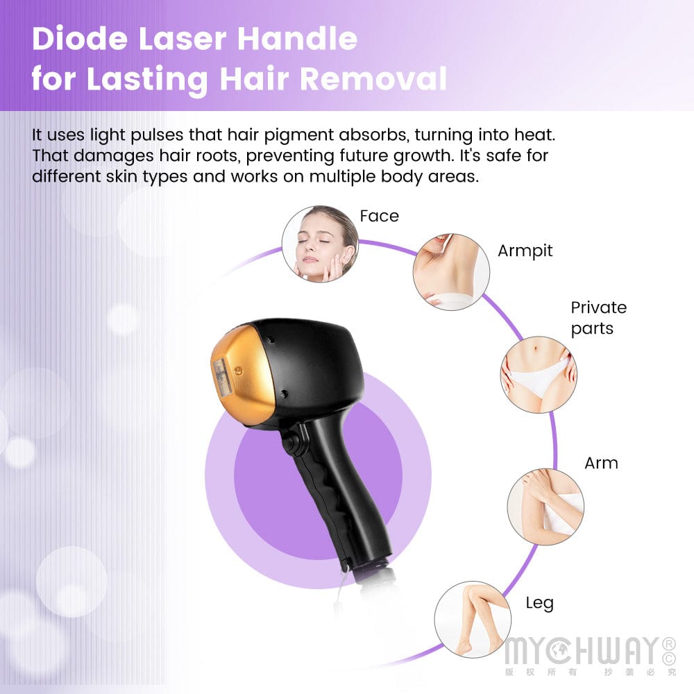 For All Hair Colors and Skin Types: The Diode Laser handle efficiently removes hair from all skin types, from light to dark, and all hair colors, including white and blonde. It's the perfect hair removal machine for offering reliable hair removal treatments for every client.
