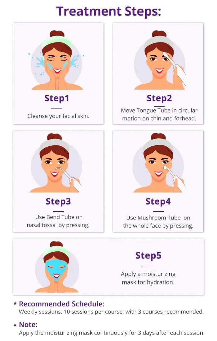 Direct high-frequency treatments boost activity in the skin's basal layer, enhancing texture and defense against bacteria. It has germicidal effects due to ozone, reduces sebaceous secretions, heals pustular infections, and clears impurities by dilating pores. It improves detoxing and circulation, balancing skin texture, oil, and moisture. Direct high-frequency does not drive chemicals into the skin and has no harmful effects on nerves or muscles. Indirect high-frequency stimulates the skin with warmth, offering relaxation and similar benefits without chemical formation on the surface.